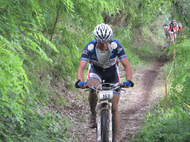 Arrivo alla bici velocemente e riesco a partire bene, ed il mio primo obiettivo è quello di fare molta attenzione in queste prime fasi di gara dove i sorpassi sono molto pericolosi nei single track…. Soprattutto per me che non riesco a fare troppa forza sul manubrio a causa del recente infortunio.