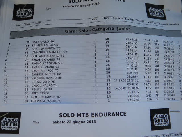 e dopo circa 350km ed oltre 10.000mt di dislivello finisco il campionato italiano 2° di categoria e 3° assoluto dietro Paolo ed il ceco Kozaik!