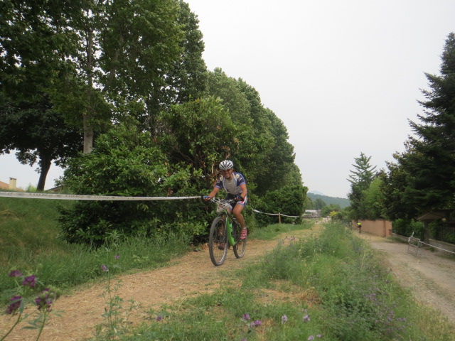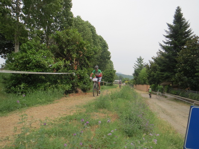 Comunque in cima alla salita si gira a sinistra e si entra nel tracciato di gara, quindi discesa lunga dentro la vigna, piccola salita che si supera in velocita, discesina con svolta a destra secca e nel rettilineo successivo BADABUM…… sono per terra…… Bipppp bippp bipppp uno da dietro mi sorpassa sulla sinistra, mi aggancia il manubrio, e cadiamo entrambi rovinosamente…..