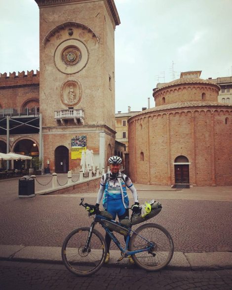 Un paio di giorni prima non sento piu’ dolore al ginocchio ,,, riguardo il percorso e le città comunque attraversate … Roma, Viterbo, Siena, Firenze, Bologna, Mantova ecc….