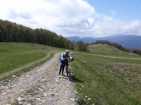 facciamo un buon break e si riparte … ma la pioggia non smette e ad un certo punto sbagliamo anche sentiero e ci ritroviamo in un tratto della montagna a mezzacosta con bici in spalla, e tutto esposto su un lato …