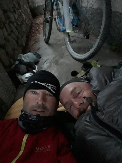 Anche questa notte è freddissima e quindi cerchiamo un riparo per bivaccare,,, fortunatamente vicino alla palestra ne troviamo uno dove sistemarci per qualche ora.
